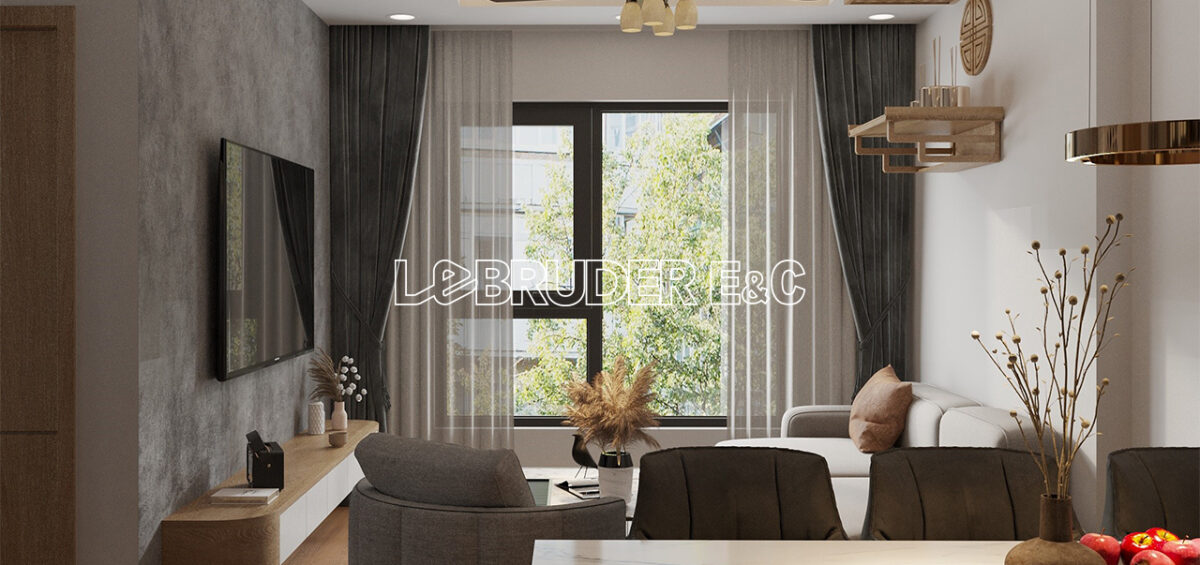 Căn hộ CH-05 tại Chung cư Trinity Tower của anh Tân, chị Nụ với diện tích thiết kế khiêm tốn là 68m2, bố trí công năng 1 khách, 2 ngủ, 1 bếp.Chi tiết