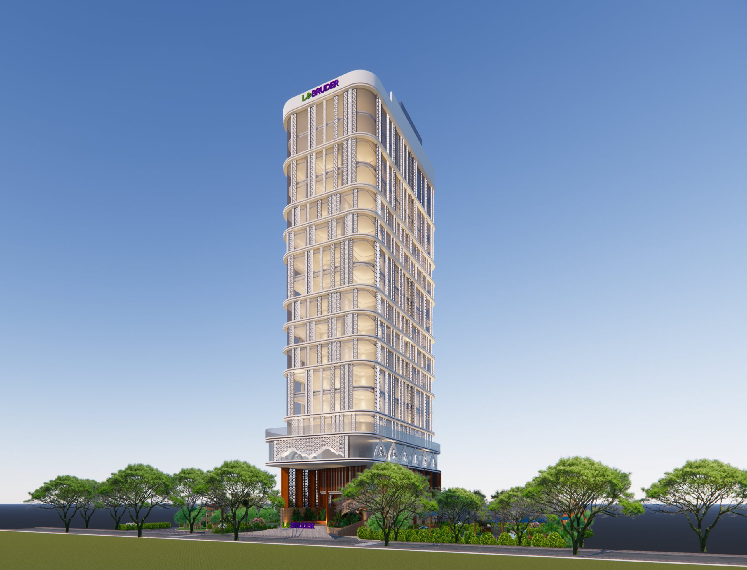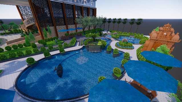 Cùng với hệ thống khuôn viên bao gồm bể bơi; khu vui chơi giải trí dành cho trẻ em sẽ đáp ứng đầy đủ các yêu cầu. Toà nhà phức hợp Lebruder tựa như một dải yếm trải dài trên mảnh đất sông nước Sóc Trăng.