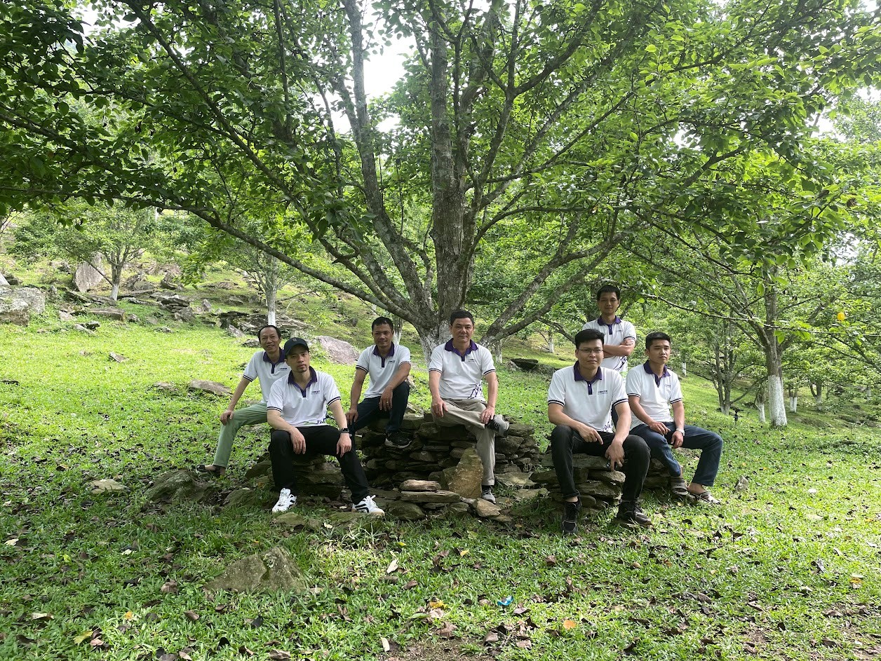 Đoàn chụp ảnh lưu niệm tại vườn lê cổ Hồng Thái