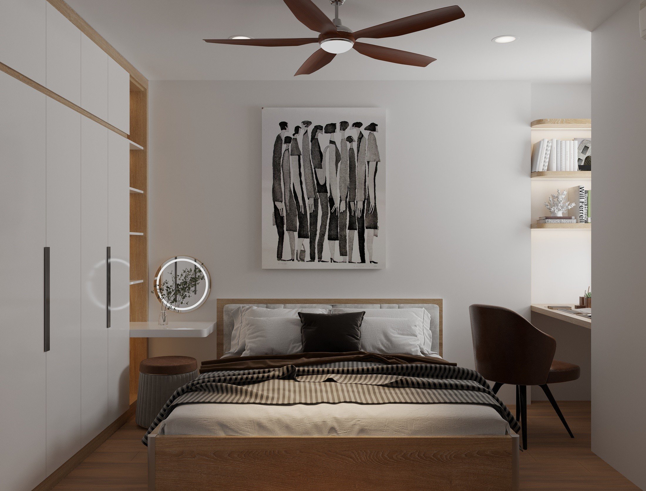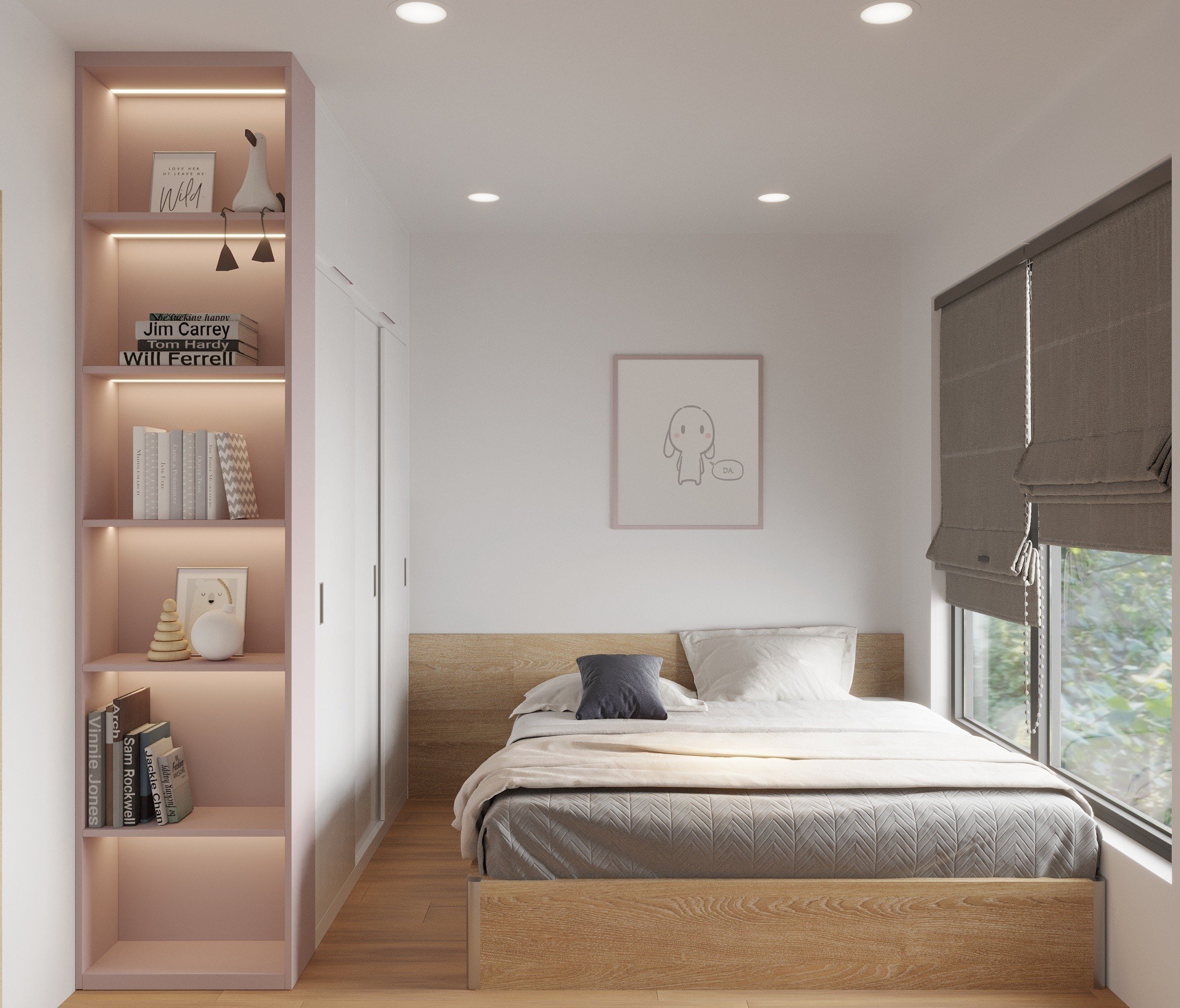 Phòng ngủ được thiết kế nội thất đa năng, tối giản